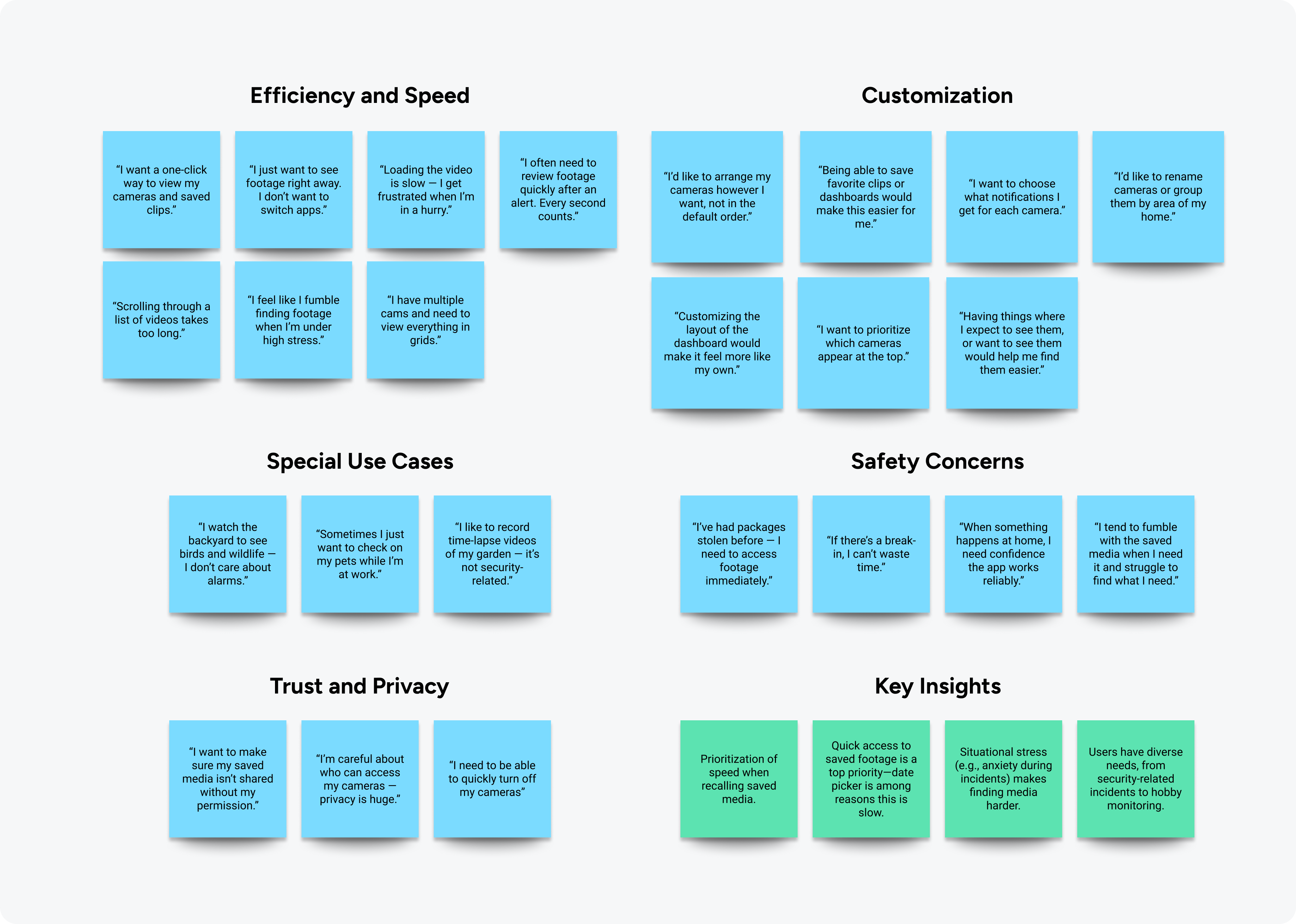 Interviewing 10 ADT power users revealed extreme use cases, from bird watchers to those who'd been involved in high-stakes security situations. For the later, I realized my design must be panic proof.
