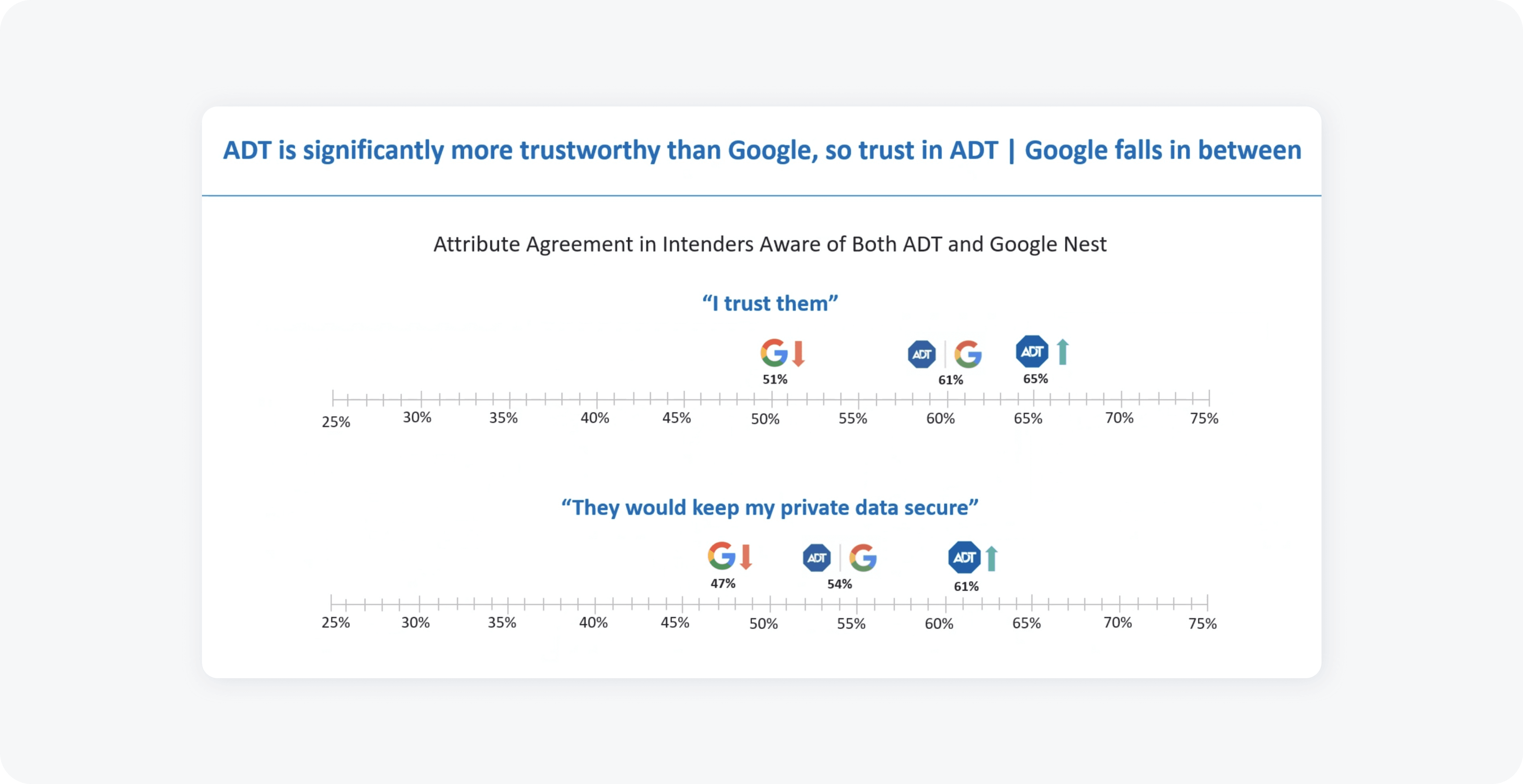 To persuade change, I surveryed 1,000 ADT and Google users to reveal a critical "Trust Gap": 61% preferred ADT as stewards of their sensitive data over Google.