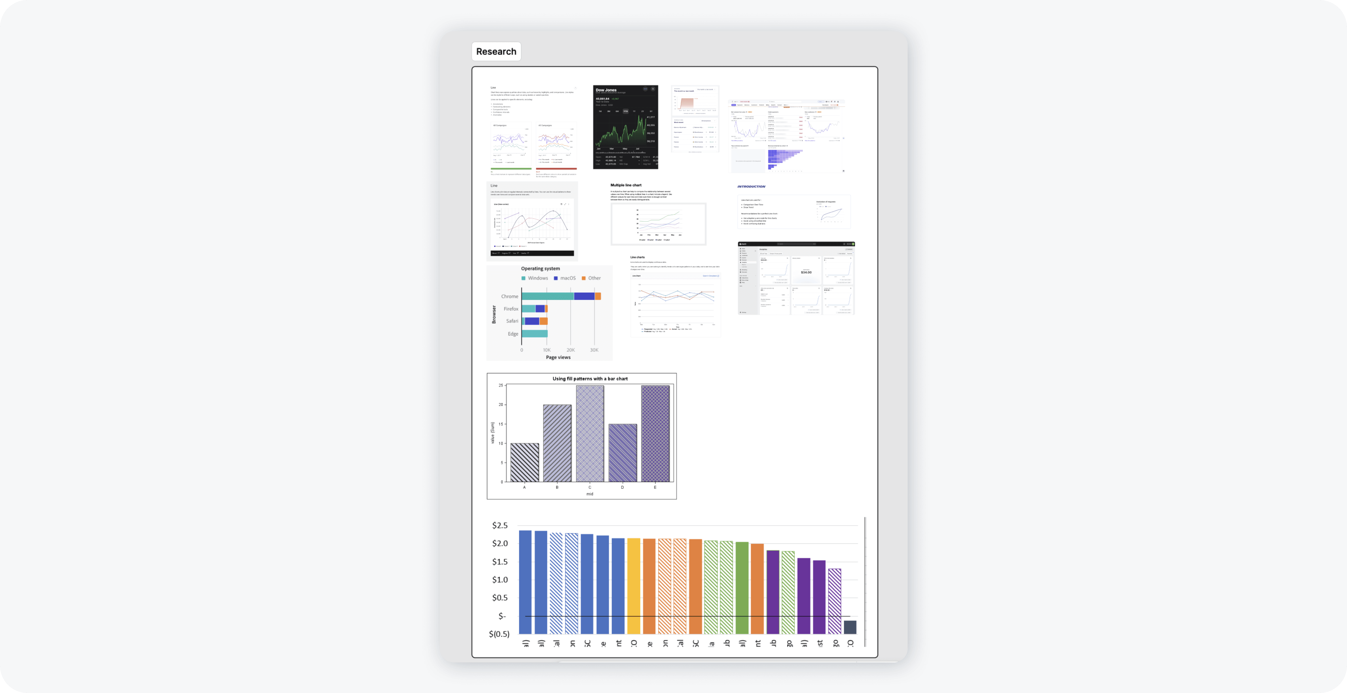 • We defined a color and pattern palette to ensure strong contrast and accessibility, enabling clear differentiation of multi-series bar charts.