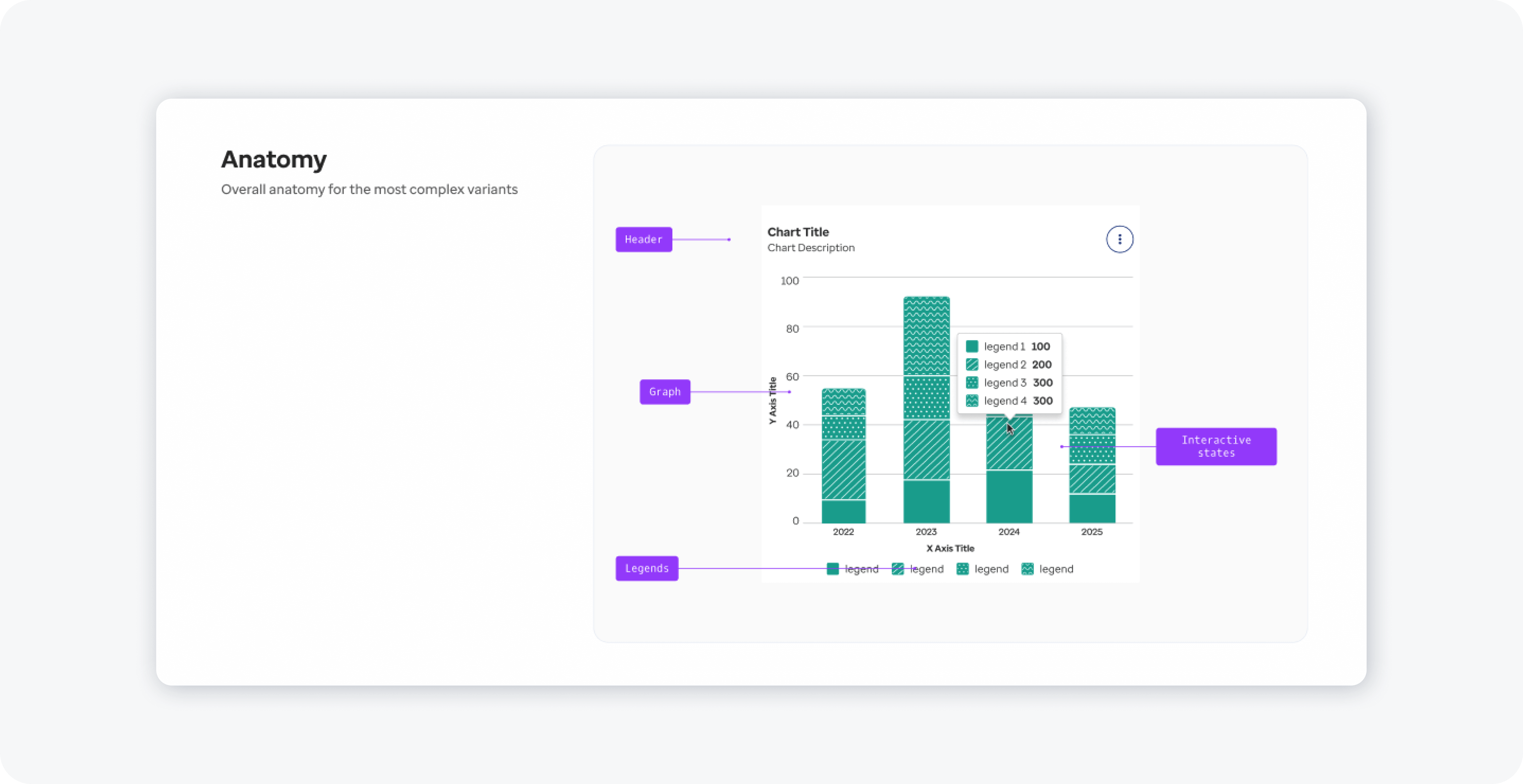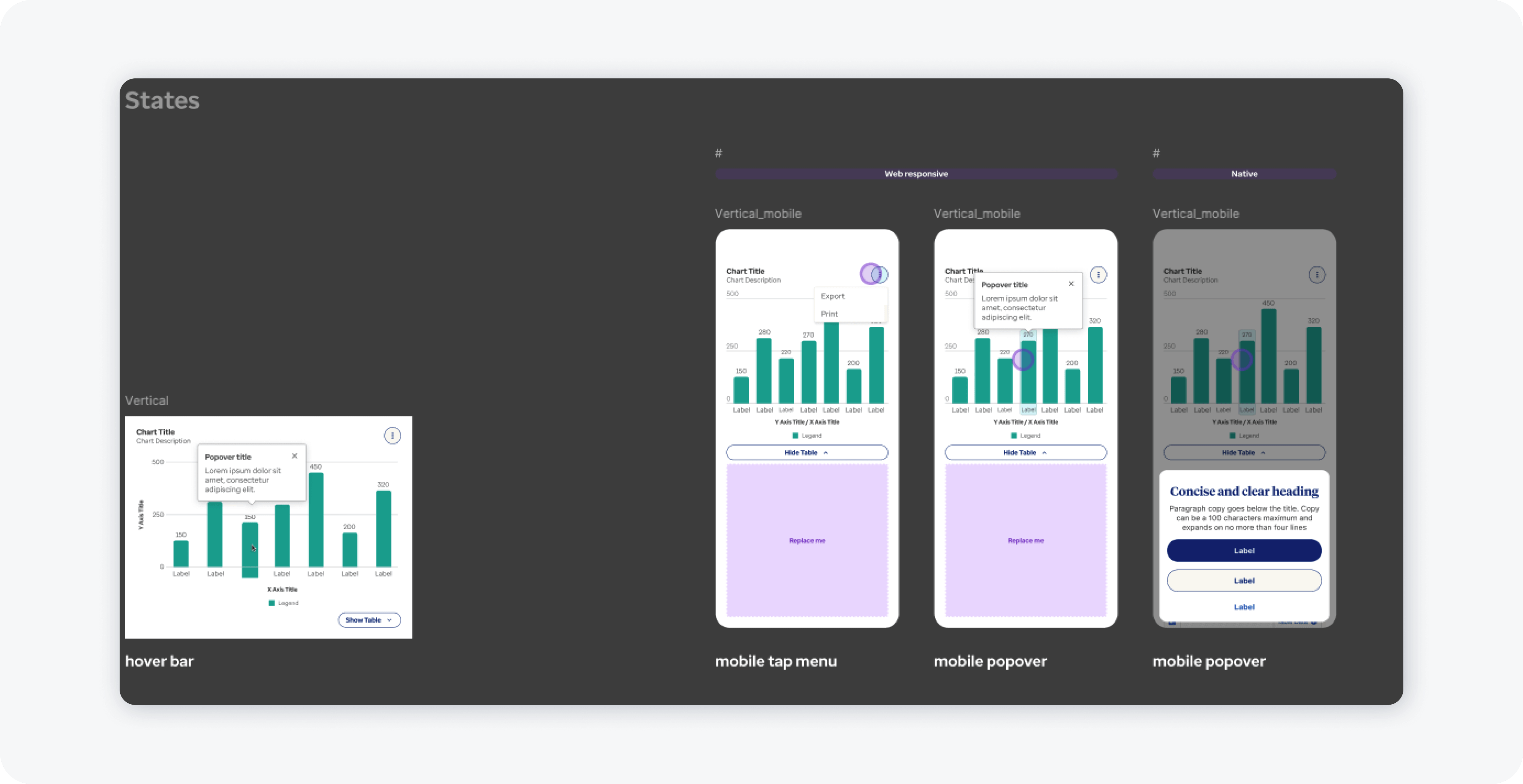 • Benchmarking financial apps and leading design systems helped define best practices for accessible and clear data visualization.