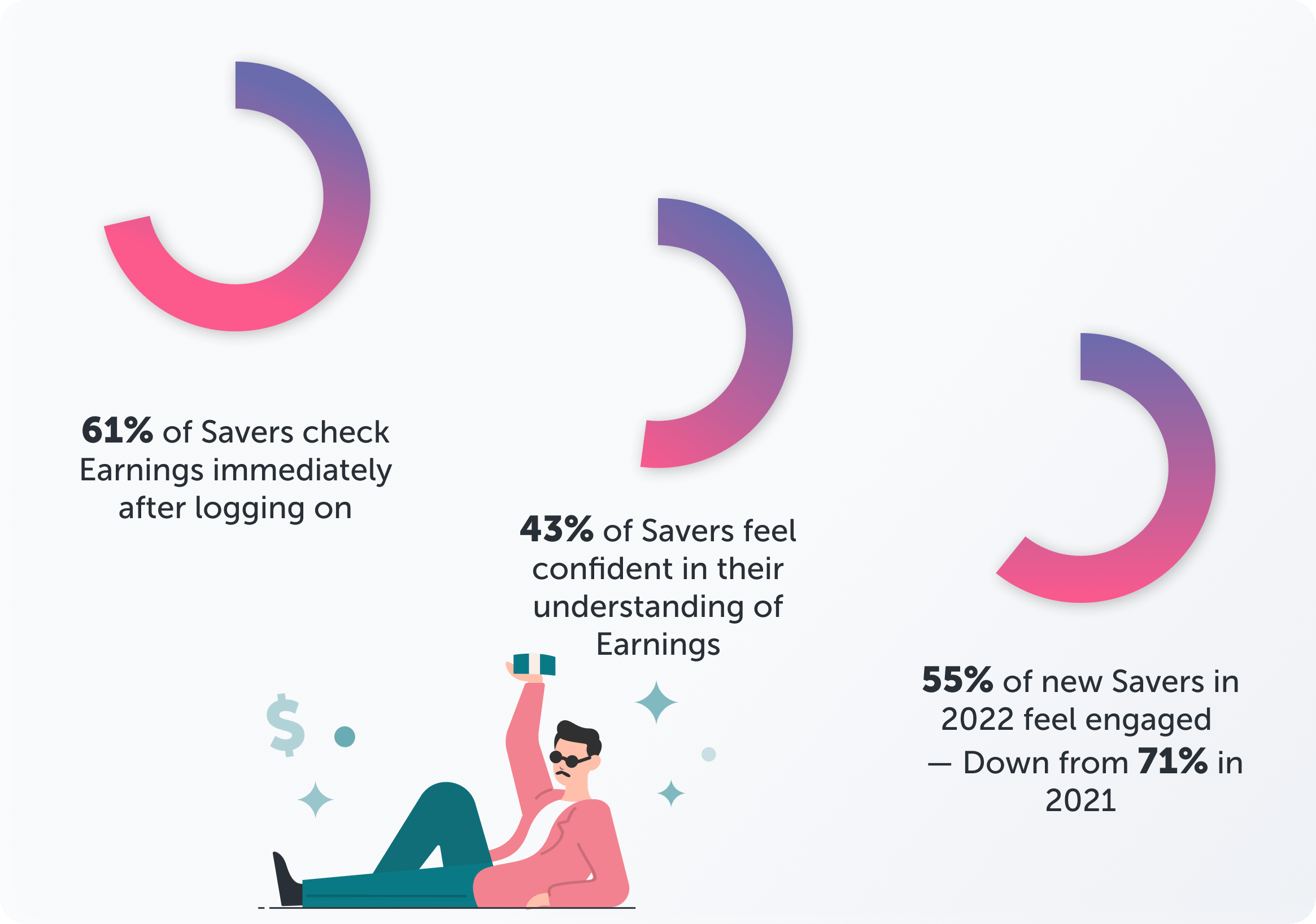 We received 526 respondents from a survey request of 2,000, and conducted interviews to understand how users engaged with Earnings. Insights revealed key frustrations: inefficient flows, underutilized features, and confusion around withdrawals.